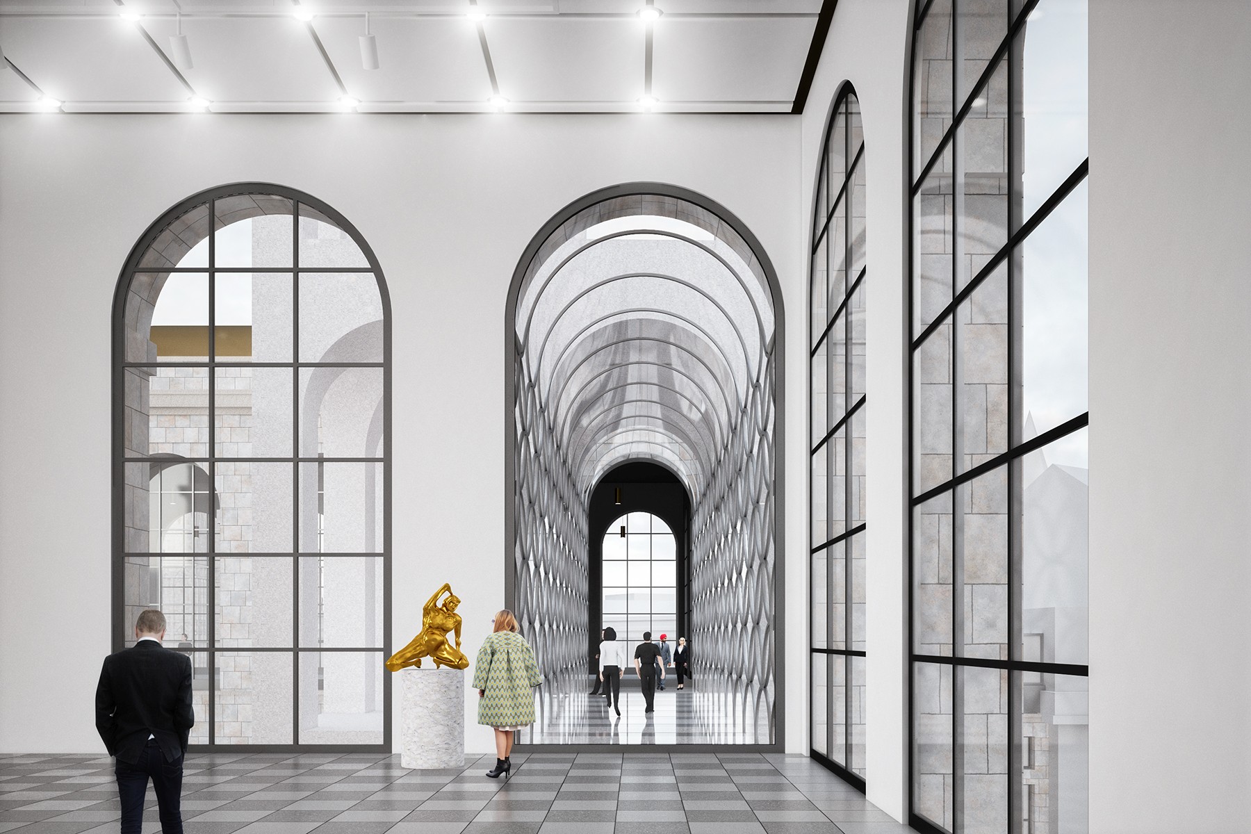 A jelenlegi múzeum épületben (Első Arengario) kis léptékű beavatkozásokat terveztünk, a látogatói útvonal apró korrekcióit szolgálva. A kiállítótérként bevonni kívánt nyugati épületszárny (Második Arengario) jelenleg irodaházként működik, a közönségforgalom elől elzárt állapotban van. Az új összeköttetés révén a kiállítási útvonal a Sala Fontanát követően a kronológiának megfelelően folytatódik a Második Arengarióban, melynek belső átszervezésénél a legfontosabb szempont az eredeti terek megőrzése és rekonstruálása volt. A hídon átérve nagy belmagasságú tér biztosít helyet a kitüntetett alkotók műveinek, kültéri kiállítási lehetőséggel a kapcsolódó teraszon. Az épület középső szintjén a 80-as évek utáni művészet tárlata kap helyet. A kiállítás végén a földszinti csarnokban alakítottuk ki az új könyvesboltot, amely a kávézóval, valamint a koncerteknek és előadásoknak helyet adó auditóriummal együtt a múzeumtól függetlenül is működhet.