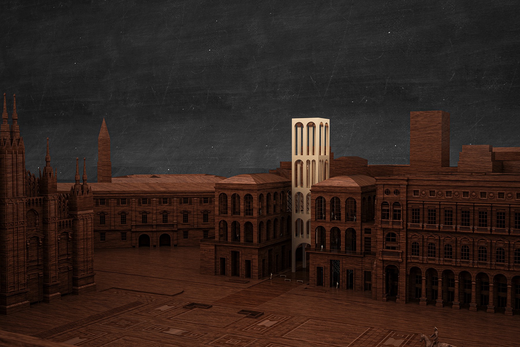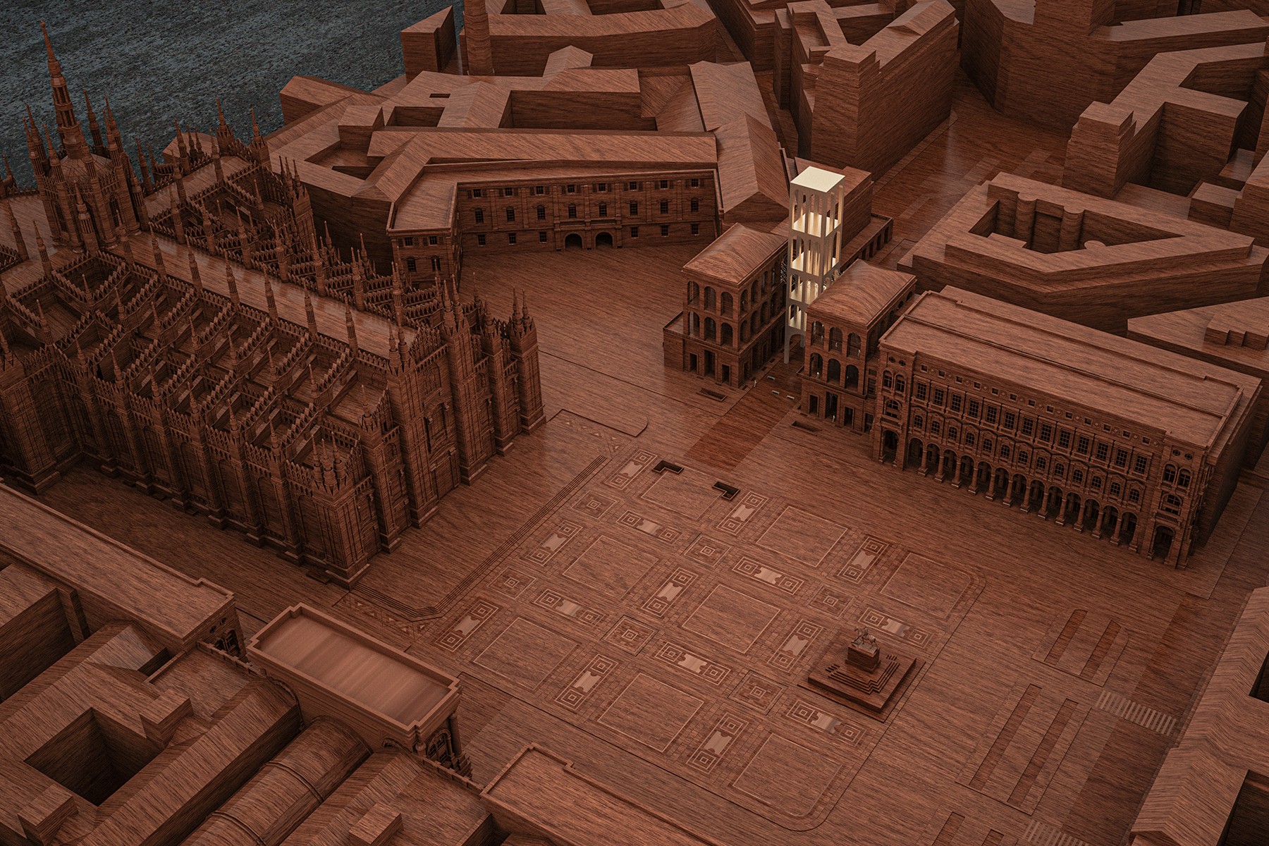 Az összekötésre adott válasz nem csak az Arengario épületeire reagál, de a város tágabb történeti és kulturális rétegeire is hagyatkozik. A Dóm tér kialakításának történetében visszatérő elem a torony gondolata, amely végső soron a mostani épületek mértéktartó és alkalmazkodó léptékű tömegeiben öltött formát. Azonban számos olyan toronyterv is ismert a század eleji tervpályázatokból, melyek különböző tartalommal, például a dóm campaniléjeként, emelkedtek volna a város fölé. A torony ötletével a korábbi történeti elképzeléseket is megidézzük: tömege nem pusztán a két épület között létesít kapcsolatot, hanem a Dóm tér számára is méltó kaput képez a Galleria Vittorio Emanuele II kapuzatához hasonlóan. A Torre Martini párjaként magasodó torony a „Museo del Novecento” új jele a városban.